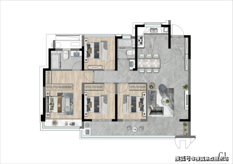园林景观:打造都会六境度假式风情园林,包括天水之钻、镜水映月、叠光水院、云潮映空、无界林院、云朵乐园等景观节点,营造出极致隐逸超奢归家体验和趣味游园轴线。