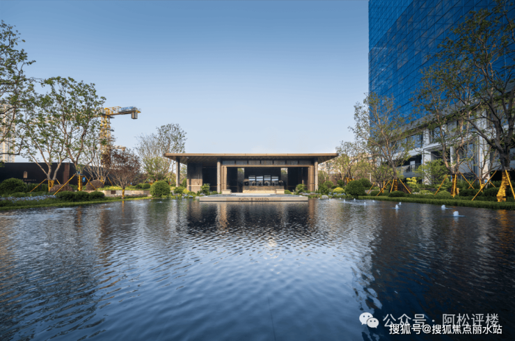 空明水院与摩卡会客厅:内部园林先期呈现的部分,大面积的水景和户外会客厅空间完美融合,为社区生活注入了灵气、静谧与诗意。