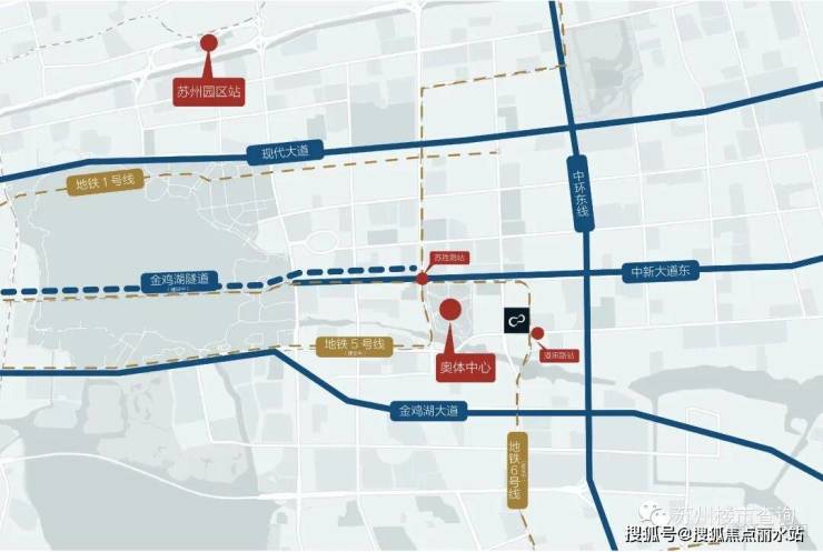 交通干道:金鸡湖大道、中环东线、中新大道、现代大道等;