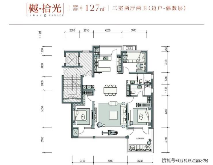 整体格局,近似于万科·雲樾洋房127平户型,同样会在尺寸上进行调整。