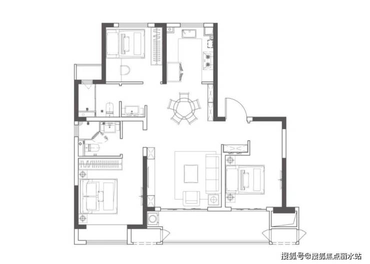 百变灵动格局,通透大横厅可一分为二,随心创变理想三房,从自在独居到三代同堂家庭,皆可随着家庭的不同阶段而进化。
