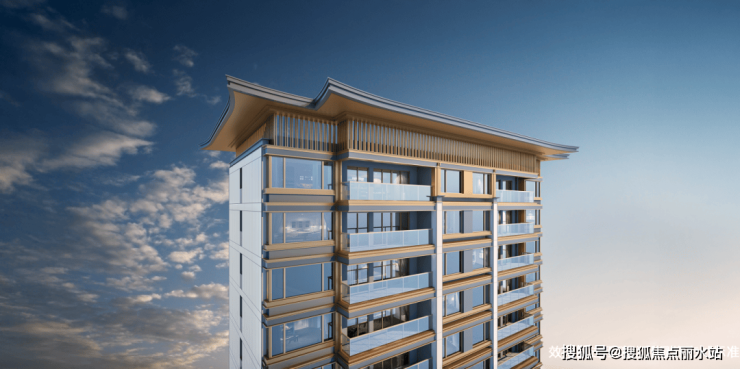 建筑立面由四面大面铝板、首层局部石材、大面积玻璃组成,屋顶提炼杭州在地元素,打造独具杭州韵味的飞檐,令人一眼就心动。