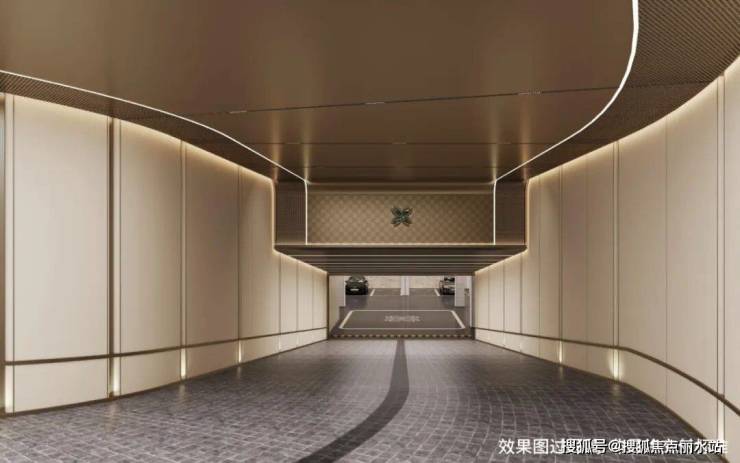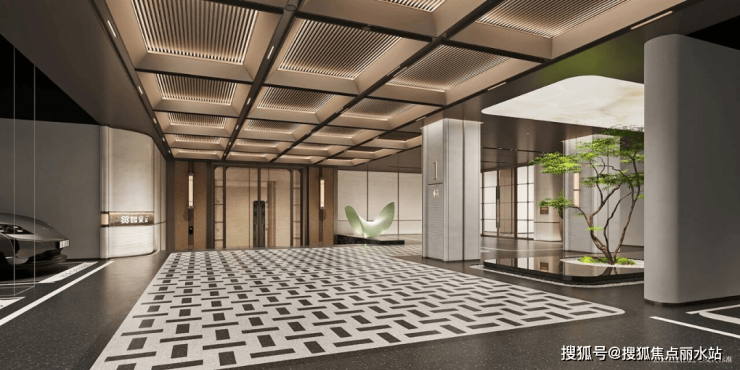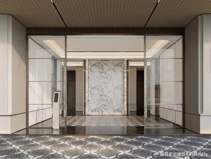 从地下入户大堂开始,奢石和金属背景墙铺展,营造酒店式尊崇感,而地上大堂,地面拼花融入超级符号,营造步步生莲的专属感,细节藏贵,推门即显。