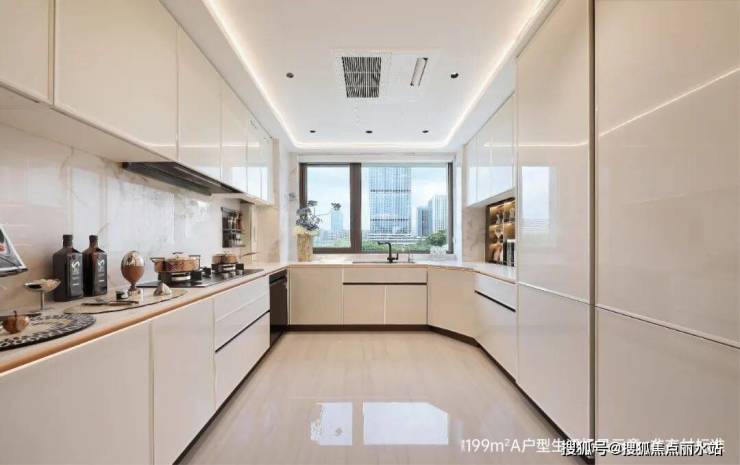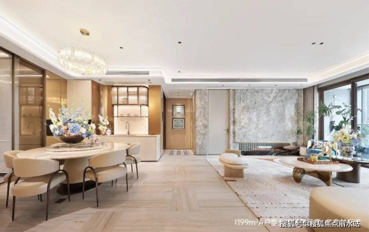 即将首开的建面约199㎡A户型,做到了类一梯一户设计,让公区私有化,出电梯就是私人空间,让您的家人和客人都感到尊贵仪式。