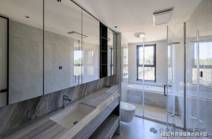 整体空间以“姑苏之水”的蓝调为基底,辅以米白、深灰、深咖等大地色系,并融入奢石、金属等材质,营造出东方含蓄与现代质感并存的氛围。
