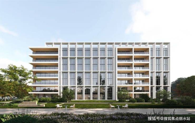 洋房层高3.2米,以银白色为主色调,通过体量错动、悬挑结构与垂直格栅设计,在保障每个单元的最佳景观视野+通透性的同时,实现了艺术性与私密性的完美平衡。