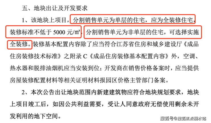 装标方面,地块要求,全装修住宅,装修标准不低于5000元/平。