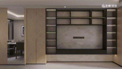 客厅的背景墙四周,不仅嵌满一面面吊柜和储物格,展示柜还装上灯带和玻璃门。你收藏的各种隐藏款Labubu,这里就是最好的舞台。春来晴翠园称之为“情绪收纳”。