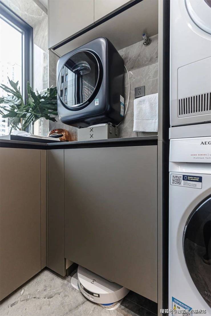 独立家政间整合洗衣、烘干、清洁与收纳功能,打造一站式高效家务动线。内部巧设洞洞板,各类清洁工具整齐悬挂、取用便捷。预留扫地机器人专属位置,实现自动回充、有序隐匿。琐碎家务从此化繁为简,从容生活触手可及。