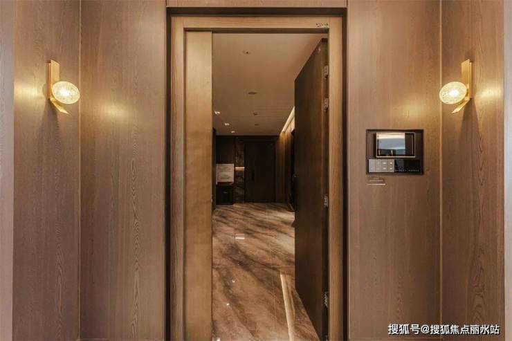 入户空间门墙一体化设计,视觉上予人一气呵成的清爽和利落,木饰面墙板的温润色泽和细腻纹理,悄然诠释着空间中的自然与温度。