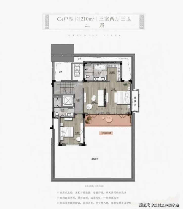 比如它210㎡以上就做到了三开间朝南,部分边套花园甚至能到400-500㎡。