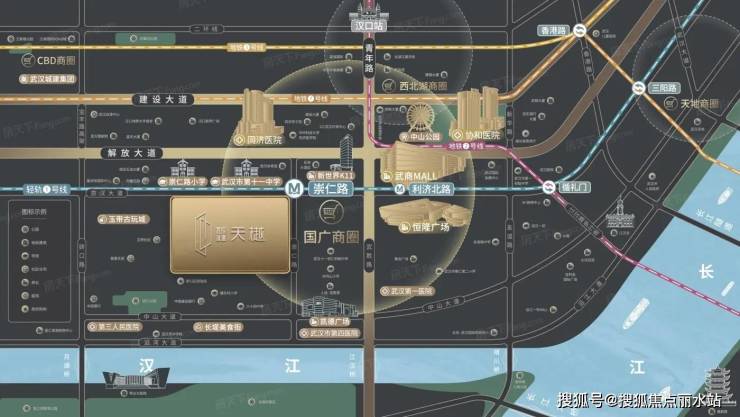 项目由中国房地产百强、武汉龙头国企武汉城建集团开发,是武汉城建集团2023年中心焕新代表作品。项目地处京汉大道与崇仁路交汇处,坐拥“四横三纵一轨”快速路网,步行至地铁1号线崇仁路站A出口仅约80m,快速即达国广商圈,近享K11、武商MALL、恒隆广场等城市TOP级商业配套资源。约1.5公里范围内可享同济医院、协和医院等顶级医疗配套、周边优质教育资源丰富,崇仁路小学、武汉十一崇仁初级中学、武汉市十一中学等名校环绕,打造家门口12年一站式目送优质教育圈。项目整体配备铂钻天幕立面,高定五重归家动线,通过围合式布局将四大主题轴线和两大居住组团串联,为终改人居划定居住新高度。