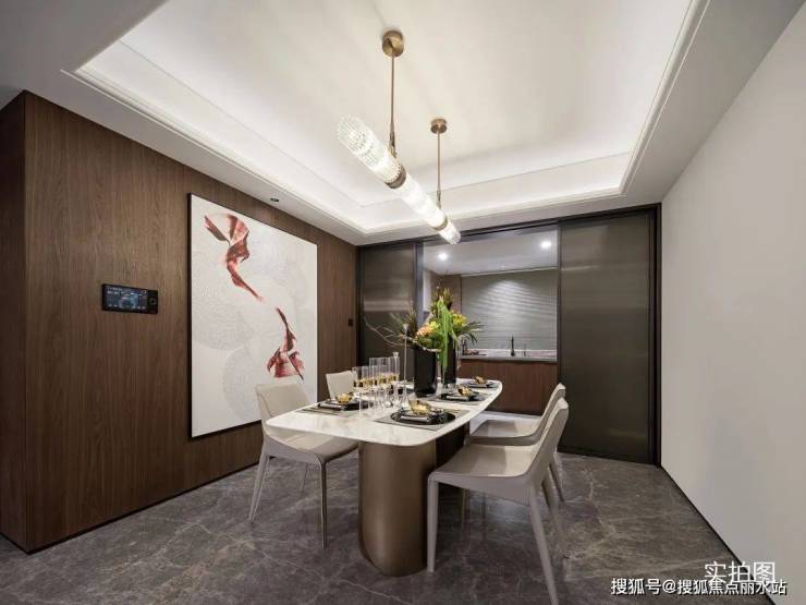 在这套充满高级感的大平层之内,目之所及皆是天然石材地面墙面、大面积岩板背景墙、胡桃木色饰面+定制墙布、华为全屋智能家居系统、甚至连每个房间都预留电动窗帘轨道……这背后是金盛置业一以贯之的高标准高要求,以及对客户需求的深刻洞察。