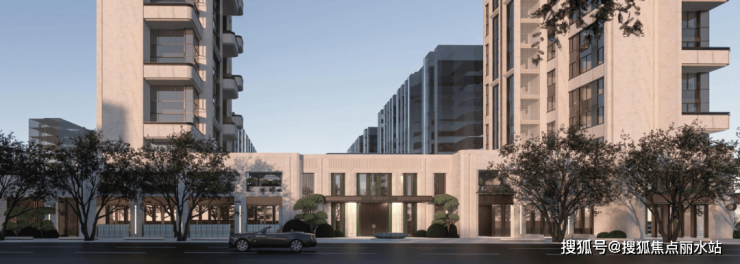 从效果图上来看,翰文府首层带有部分底部商业,整体建筑立面为石材、铝板金属、大面积玻璃结合打造。