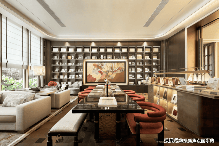 水族馆艺术会所以其颠覆性设计,重塑高端社交逻辑:巨型水族馆中鱼群悠然巡游,光影流转间,营造出世界级度假目的地的沉浸氛围。休闲书吧、行政酒廊等多重场景在此交融,成为灵感与情谊的自然流淌之地。