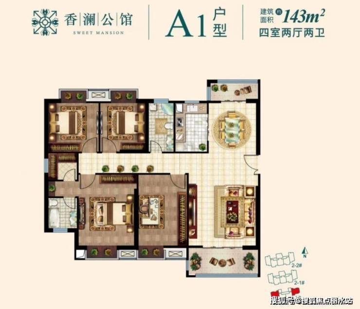 户型点评:143平位于1号楼边户,四房两卫设计,功能性强,居住舒适度高,一步到位。