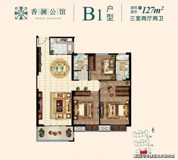 户型点评:129平位于2-1、2-1号楼边户,大三房,是真正的南北通透设计,自带南北双阳台。