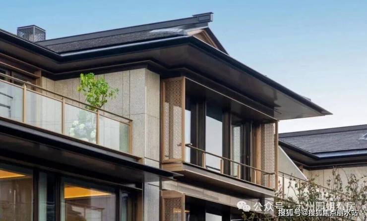 联排外立面实景,石材+金属铝板,搭配东方屋檐、雅灰流金经典配色...极具现代新中式美学,审美极高。