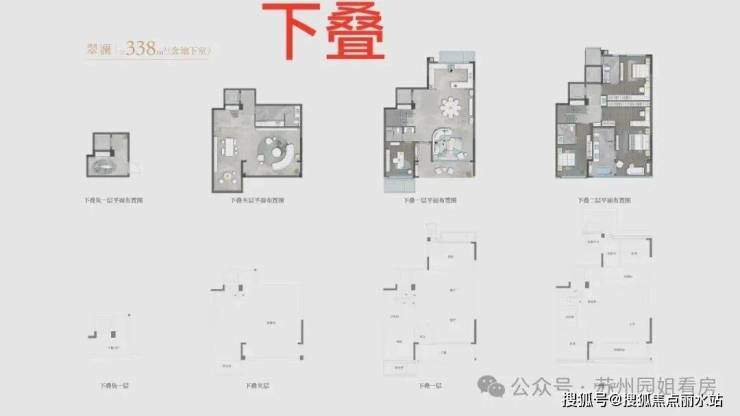 约280㎡中叠,带地下夹层储藏室,地上4房4卫,挑高赠送,上下双阳台开敞设计,得房率惊人!