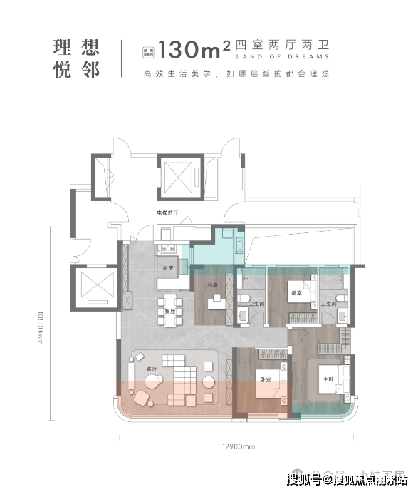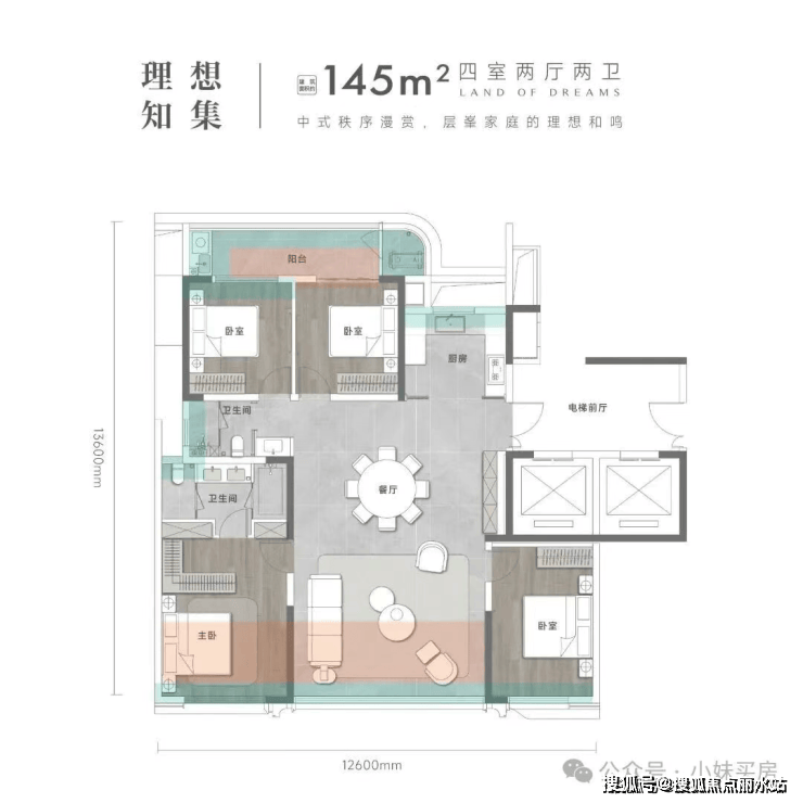 户型设计:主力户型为建面约130-225㎡,以四房起步,层高约3.1米,得房率超100%,采用2梯2户设计,户户独立电梯厅,配备大面积飘窗、阳台、设备平台等优化空间,居住舒适度高。