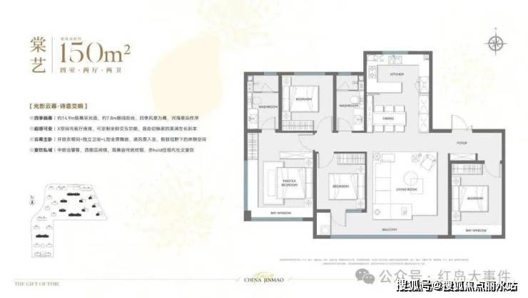 户型设计彰显匠心,起步即为125㎡“三房宽厅”,主力140㎡、150㎡大平层奢阔舒适,更设有192㎡景观四房及219㎡、267㎡顶层跃层。所有户型层高均在3米以上,居住空间感远超市面主流产品。品质超越价位,定义“质价比”典范最令市场震撼的是,中欧金茂锦棠以单价1万+的价格,提供了堪比4万+楼盘的配套品质。