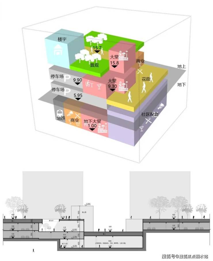 生活层(南区):面向大学路的低洼区域布置商业与精品公寓,形成活力界面,让每扇窗户都成为收藏山海的艺术画框。