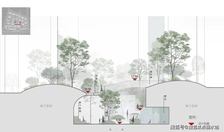 花街层(中区):利用中部自然形成的上山路径,打造500米下沉式"漫享花街",以樱花、紫薇等本土植物营造四季变幻的生态走廊。