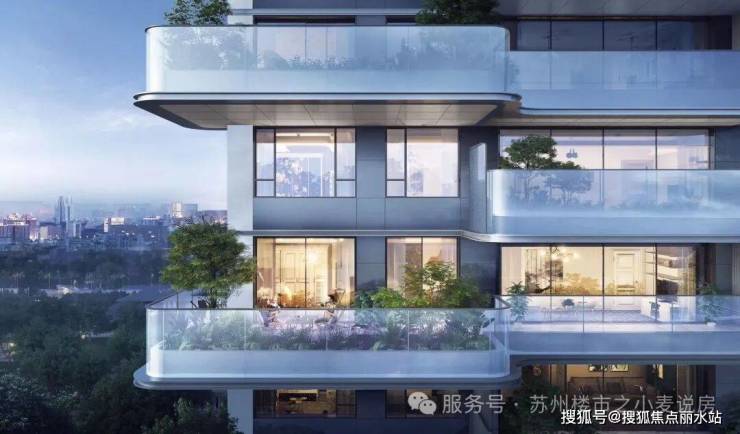 依循世界奢宅建造标准,以干挂铝板配合玻璃,立面上采用了曲线和弧面的设计,流线 美学勾勒立面造型;同时设置南北双阳台,享拥 360°视野,打造苏州湾至美天际线。