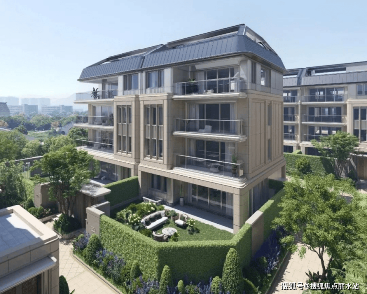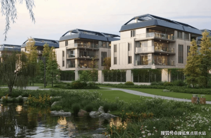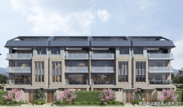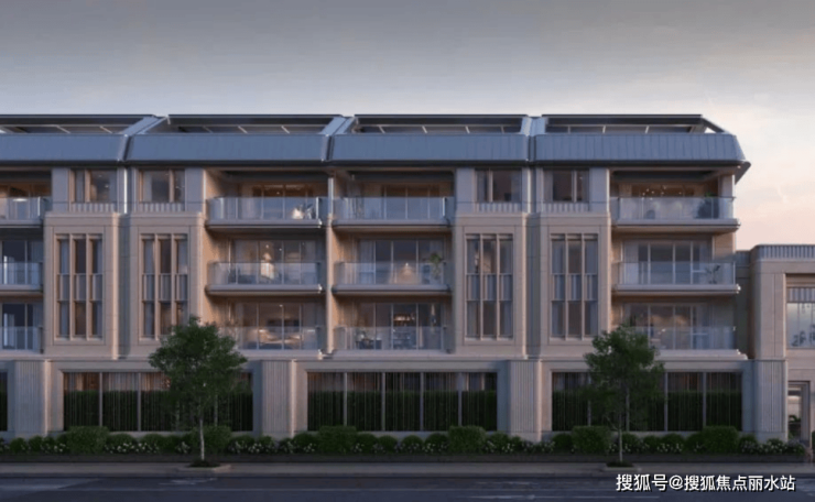 相较于市面多数叠排的立面语言遵循“高层逻辑”,主要强调建筑的横向线条。湖山丽舍则从欧洲古典建筑的竖向分割中汲取灵感,结合新艺术运动所广泛运用的自然曲线,通过灵动自由的波动墙体,形成连续弧形的建筑界面,不仅让建筑流露出湖居的韵味,更在视觉上创造出每单元上下两户为一体的“独栋感”,为业主带来更为尊贵的墅居生活体验。