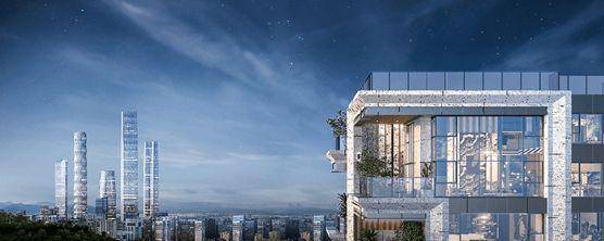 【质感立面】:错层相交的建筑形式以及流线造型的外观设计,品质用材全部选用顶级标准,建筑外立面是采用大玻璃幕与干挂陶板,构建国际一流的建筑质感,经典而高级。