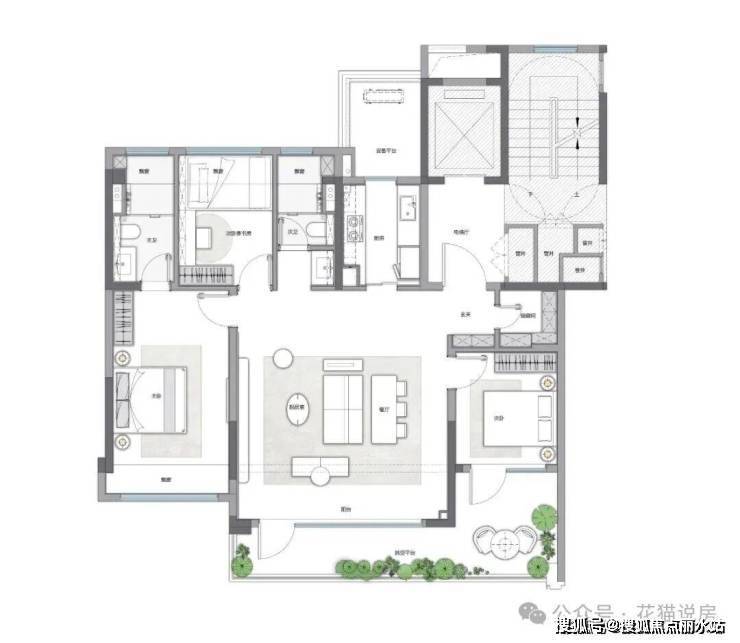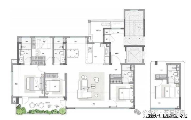 三重庭院园林,空中、地面、下沉三重庭院错落分布,在家里可享受空中花园,在社区内可享受景观园林,往下走还有下沉式庭院。