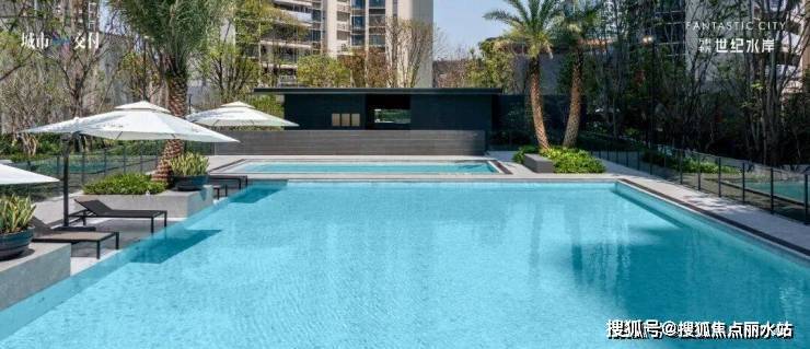 流光泳池采用高端暹罗白石材铺就,划分了成人区和儿童区,周边点缀着度假风情的弯杆银海枣,配以遮阳伞和躺椅,营造出浓郁的热带度假氛围。