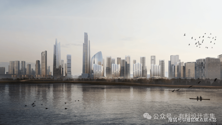 方案以长江航运文化中的“千帆竞渡,百舸争流”为意象,深度回应滨江地理特质:蜿蜒天际线呼应江面层波叠浪,实现城市轮廓与江景的视觉共鸣;错动层叠的“风帆”形态,赋予楼宇灵动气质,轻量化处理打破传统滨江建筑厚重感,塑造通透立体形象。