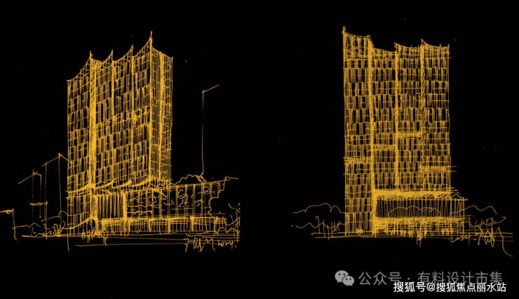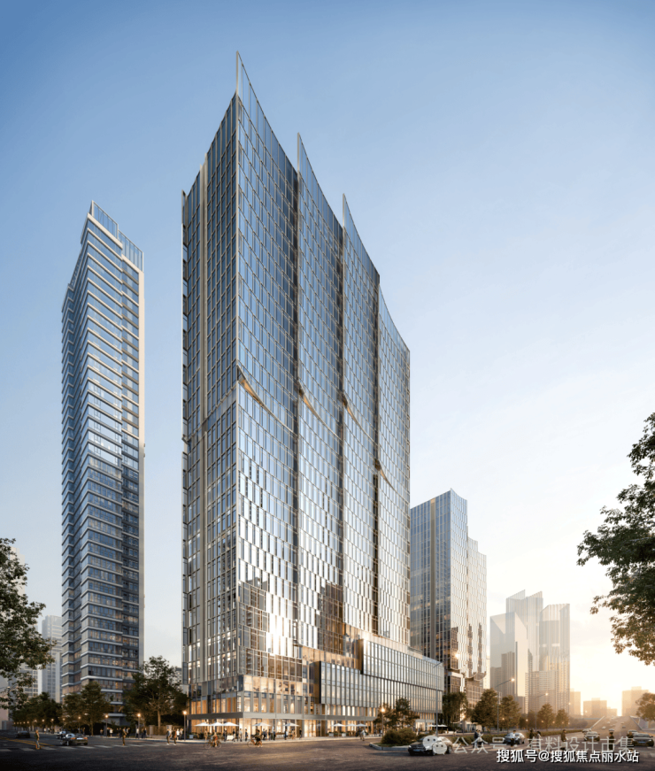 本次Benoy为项目提供了商办部分建筑立面方案设计,项目由四栋100米至120 米高的单体塔楼组成。