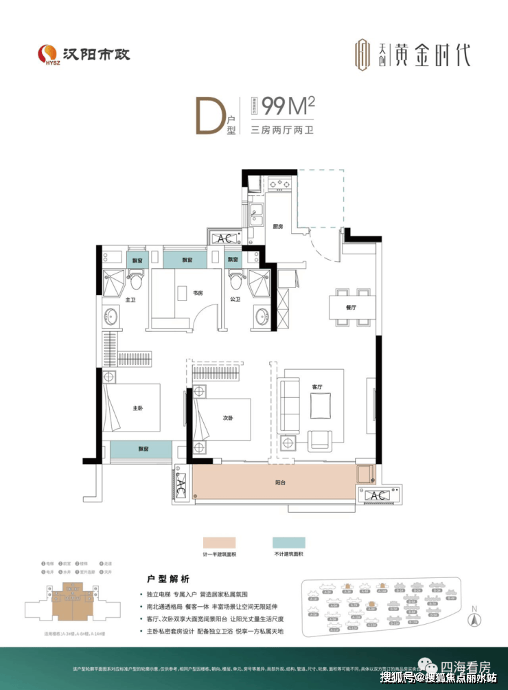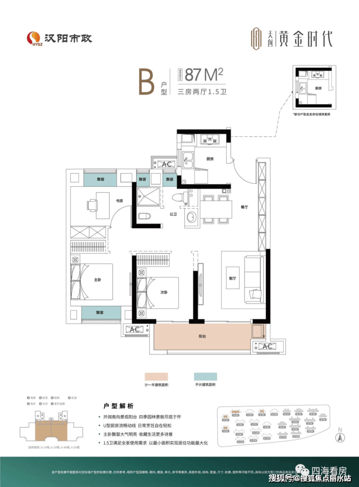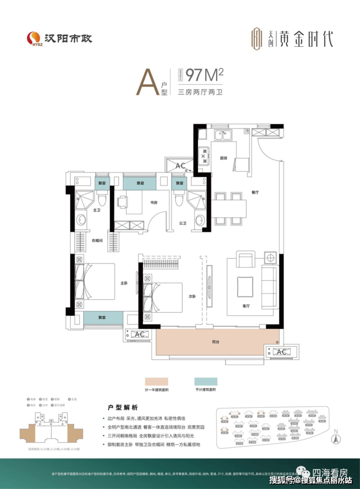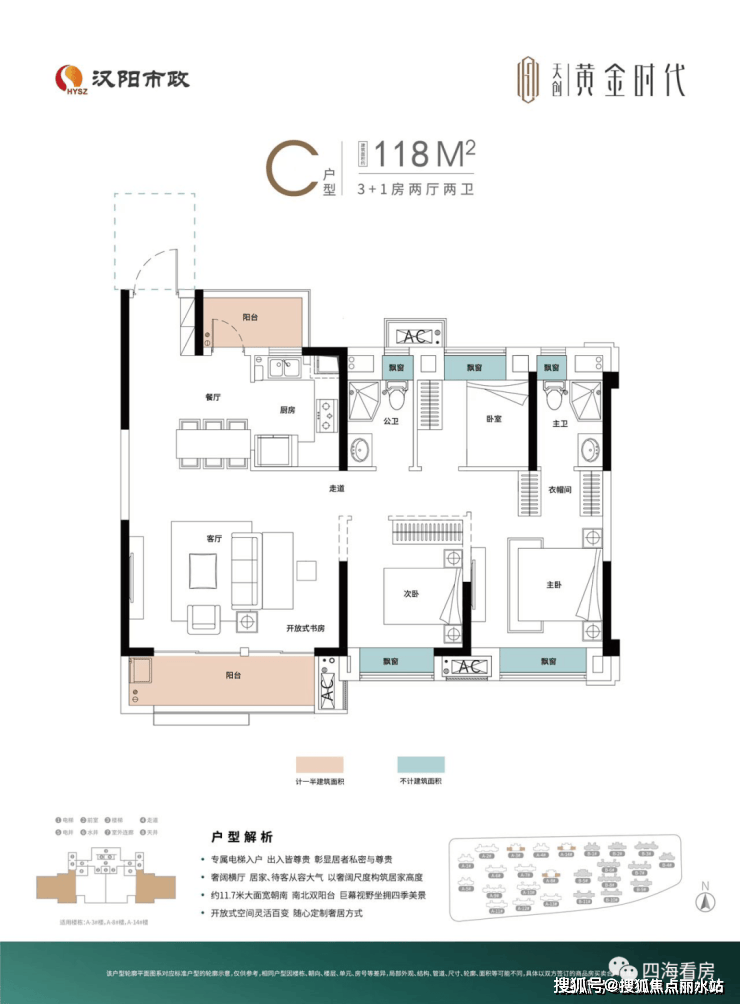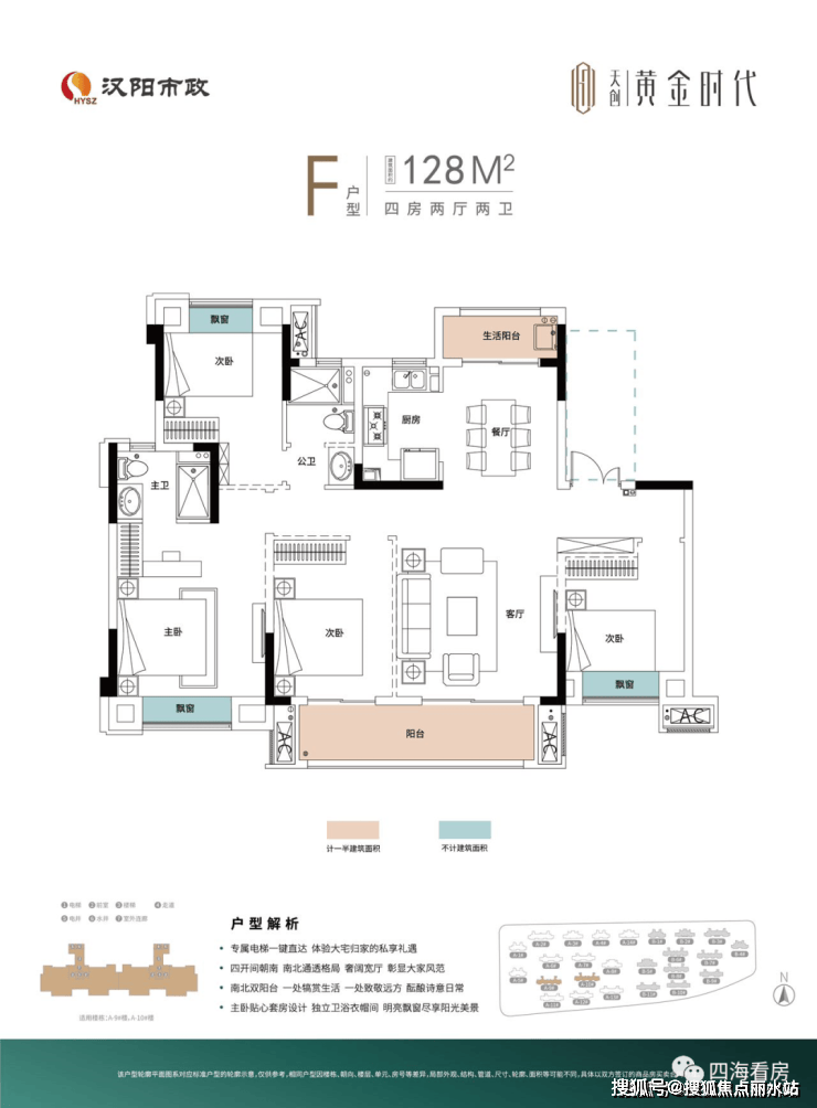 3、产品设计:项目包含洋房、小高层、高层,产品规划丰富,而且户型产品功能性很强,88平能做三房,128平做四房还有大横厅。