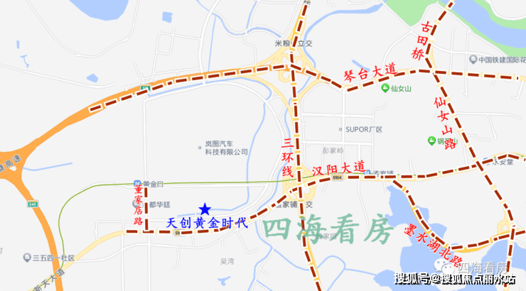天创黄金时代位于永丰环路以北,近地铁4号线黄金口站,楼市中属于黄金口板块,行政划分属于汉阳区,距离三环线约1公里,距离二环线约5公里。属于三环边。