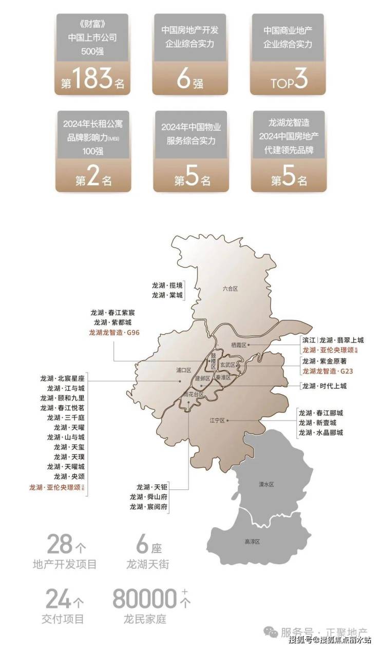 ▶龙湖集团,连续13年入选中国房企综合实力TOP10,坚持全国化多航道布局。深耕南京十余载,龙湖以前瞻性眼界布局28席品质著品,每一席皆为经典。龙湖龙智造,作为旗下国内领先的轻资产营造服务品牌,携手亚伦、星河、怡康,为项目提供建造管理服务,四强联袂,颠覆此前未有,以超四代的高定产品——北城央璟颂,登临南京下个新峯。