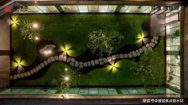 不久前开放的营销中心与会所,像一座微缩的游园梦境——40米宽的归家门仪,引导你步入一片绿意蜿蜒的苔径。