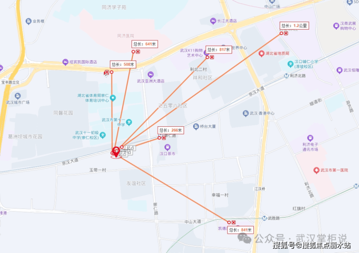 地块毗邻京汉大道,直线距离解放大道也不到500米,离轻轨1号线崇仁路站仅约200米,周边有凯德广场(武胜店)、武商MALL、武汉恒隆广场、武汉K11等大型商业体,同济、协和顶级医疗资源,实打实的内环核心占位。