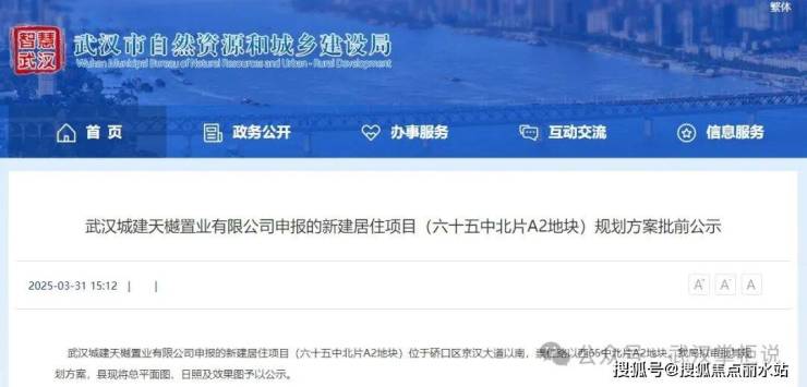 前段时间,汉口内环旁还有一宗地块报规,即武汉城建天樾置业有限公司申报的新建居住项目(六十五中北片A2地块)规划方案。