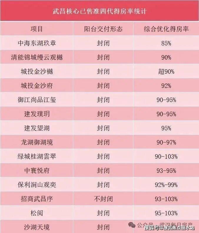 统计了一下武昌核心15个准四代住宅,目前得房率最高值大概在97%-105%。