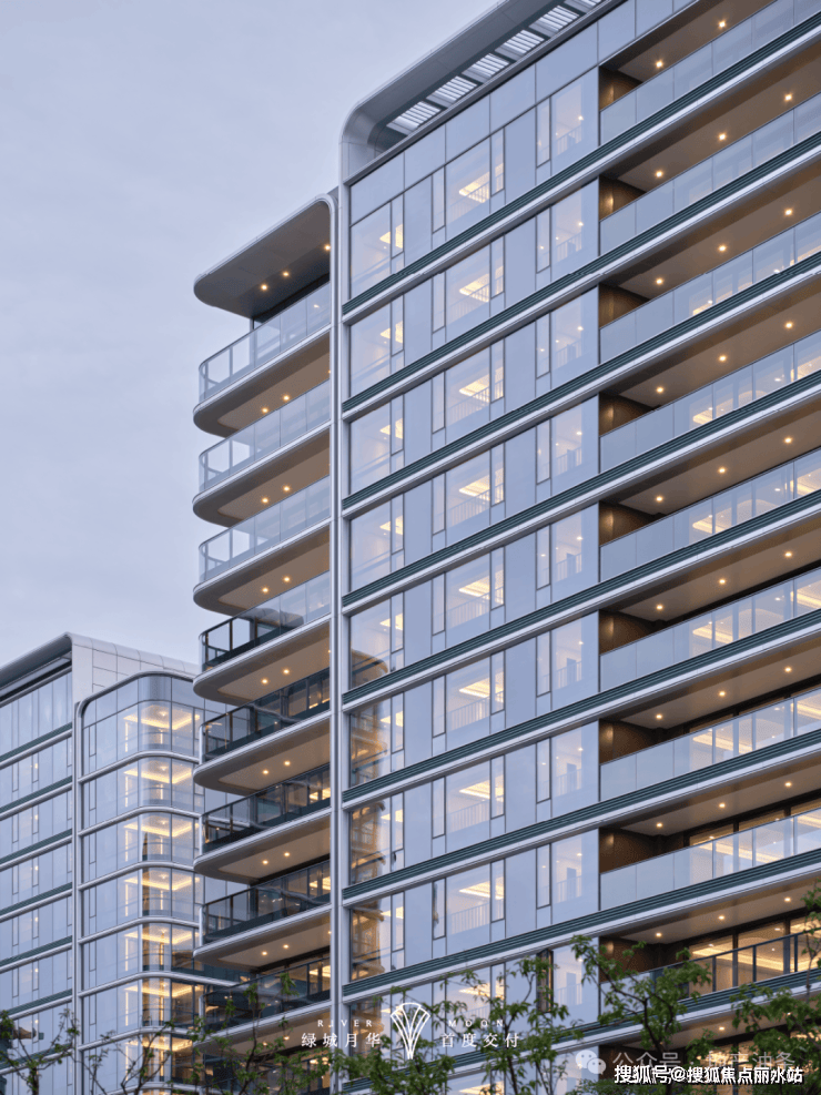 外立面以玻璃搭配转角圆弧,加之自带人文情怀的灰绿陶板线条,呈现杭州人居的温润气质。