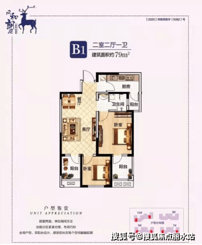 建筑面积约79--88.2平两房两厅一卫:
