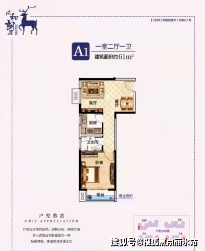 建筑面积约61平一房两厅一卫: