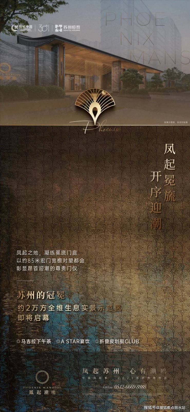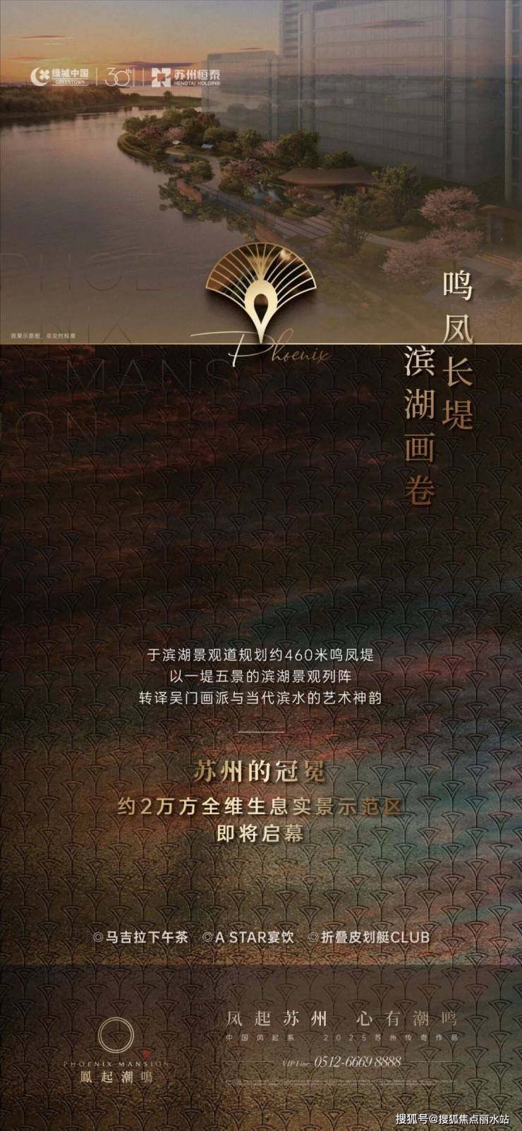 以 “苏州的冠冕”为产品精神内核,苏州凤起潮鸣围绕“凤起冕旒”、“凤于展翅”、“凤翎华章”三大价值维度,构建融合传统东方与现代国际的生活美学场域,并形成“一堤三面湖· 水街襟两园 ·八境共潮鸣”的多元场景,将项目的湖景资源、公共空间与苏州在地文化形成了充分交融。