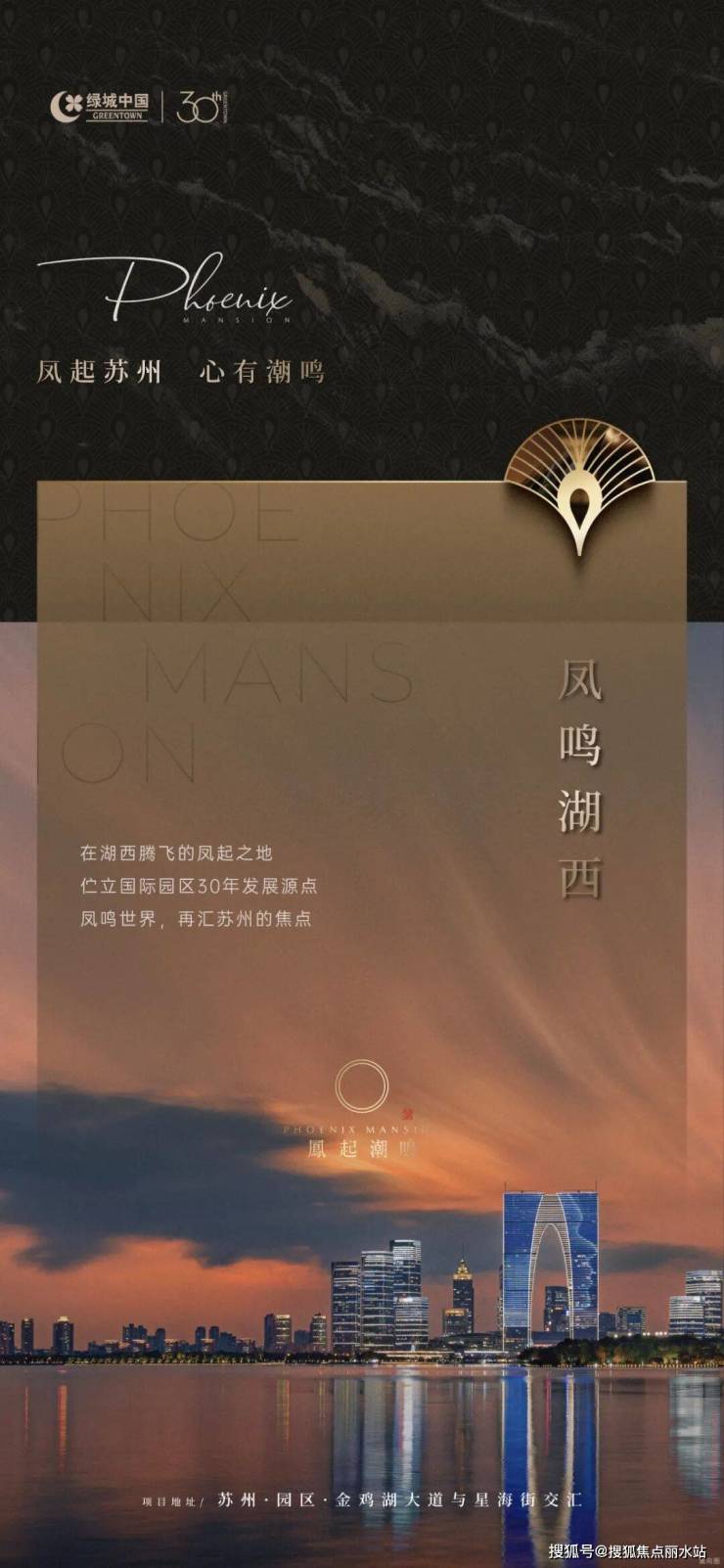当三十年历史变迁的苏州园区,遇见成立三十年的绿城,更赋予了苏州凤起潮鸣特殊的时间价值。项目位于金鸡湖大道与星海街交汇处,向北而望,湖西 CBD 的城市天际线璀璨夺目,“闻鸡起舞”的雄心壮志油然而生。湖西板块曾创下过苏州多个纪录,从园区开发到产业升级,从地标建筑到国际社区,湖西就是当代苏州的凤起之地。