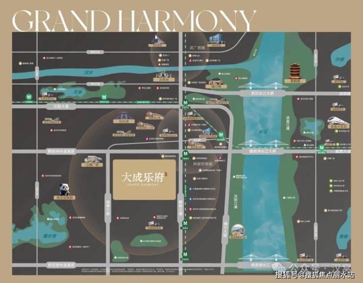 汉阳江滩(步行即达)/南岸嘴江滩,人文名胜:归元禅寺(直线1km)/晴川阁/古琴台/龟山电视塔/琴台大剧院&美术馆,城市公园:武汉动物园/墨水湖公园/月湖公园
