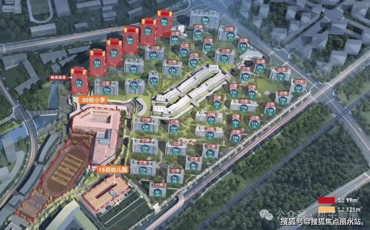 如果把城北CBD的标高定义为0m,那么星缦云渚的架空层则分别在9m和15m之上,向南可以俯瞰CBD全貌;9-15米区域为地上车库,9米板之上是配建的30班小学、15班幼儿园、体育活动中心、邻里中心和BLOCK商业街区等配套,15米板上为洋房。