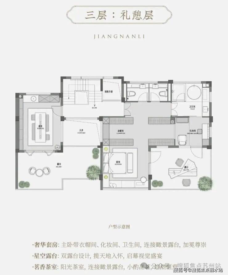 作为苏州湾板块稀有的低密宋风合院项目,江南里始终秉持“ 让宋韵重生於当代 ”的营造理念。本次获批房源延续项目一贯的高标准产品力,以《 营造法式 》为蓝本,融合现代居住需求,实现“ 宅园合一 ”的终极理想。