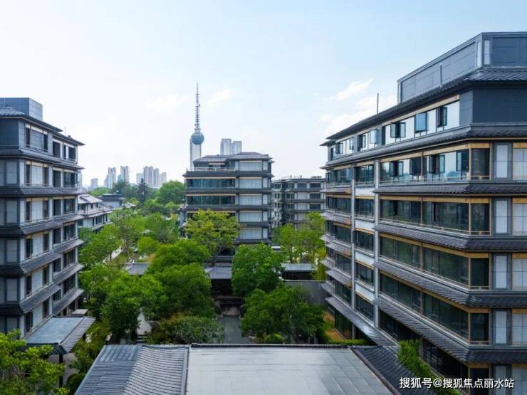 紫宸公馆业主归家,先看到的是家门口的玉带河和鱼鳞瓦屋面披檐,融合了40多种古建元素转译的立面,在老城中自带滤镜,一眼就能看到